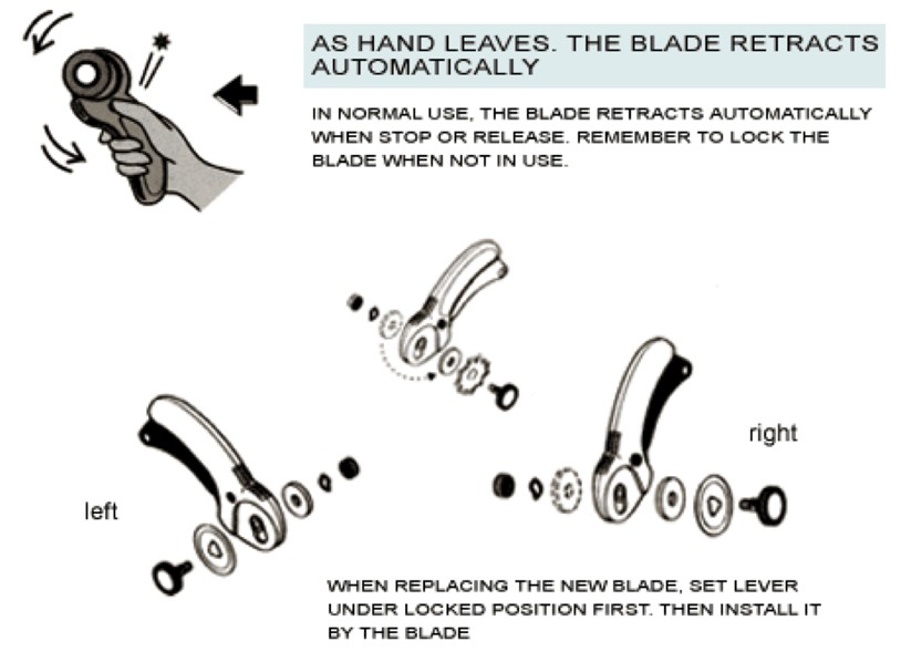Characteristic Any fabric can be easily tailored. For safety guarantee the touch-button design is adopted to allow the blade to retract automatically once the hand is released. The blade can also be locked.