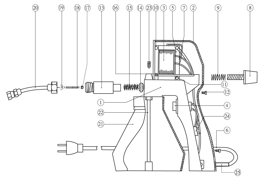 If the spray gun is out of order, please detach and examine it according to the instruction menu attached. If the reason is oxidization, please remove it by using deoxidization paste, then drop little nourish oil on it. If the reason is damage of parts, we can supply all parts at reasonable price. Please indicate us the part No., we assure you of our best service at all times. |