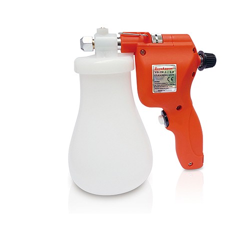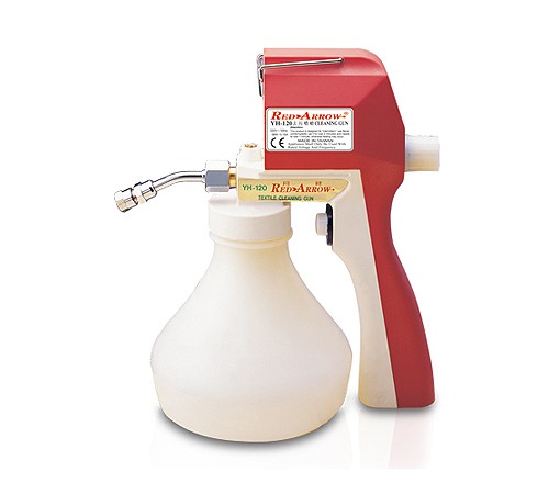 The YH-120 textile spot cleaning gun is an electric tool that removes localized fabric stains using high-pressure spray. It injects cleaning solution into the stained area and forces contaminants out more efficiently than traditional methods.